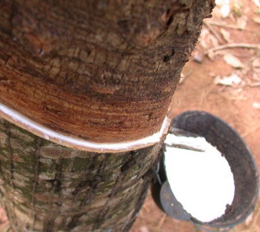 世界上約有2000種不同的植物可生產(chǎn)類似天然橡膠的聚合物,已從其中500種中得到了不同種類的橡膠,但真正有實用價值的是巴西三葉橡膠樹。橡膠樹的表面被割開時,樹皮內(nèi)的乳管被割斷,膠乳從樹上流出。從橡膠樹上采集的乳膠,經(jīng)過稀釋后加酸凝固、洗滌,然后壓片、干燥、打包,即制得市售的天然橡膠。天然橡膠根據(jù)不同的制膠方法可制成煙片、風(fēng)干膠片、縐片、技術(shù)分級干膠和濃縮膠乳等。
